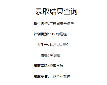 步骤二:在在查询页面输入姓名、考生号(10位)、验证码,点击查询按钮即可查询录取结果