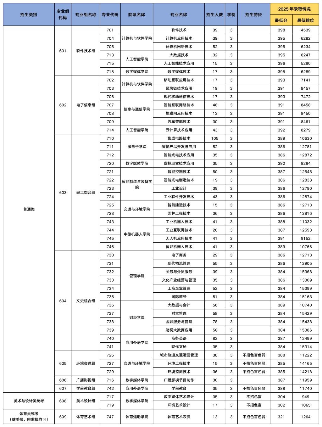 5)2025年录取情况:仅供考生填报志愿时参考用,美术与设计类、体育类录取最低分为综合分。