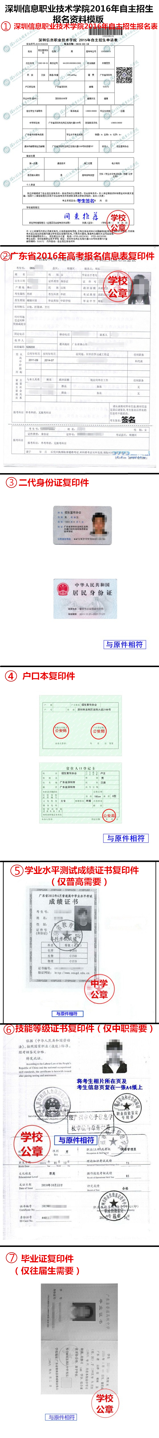 注:1.编号1-5的资料应/往届高考生都必须有,并且都需要的公章都需齐全,缺一不可,并且盖章均要盖在正面。